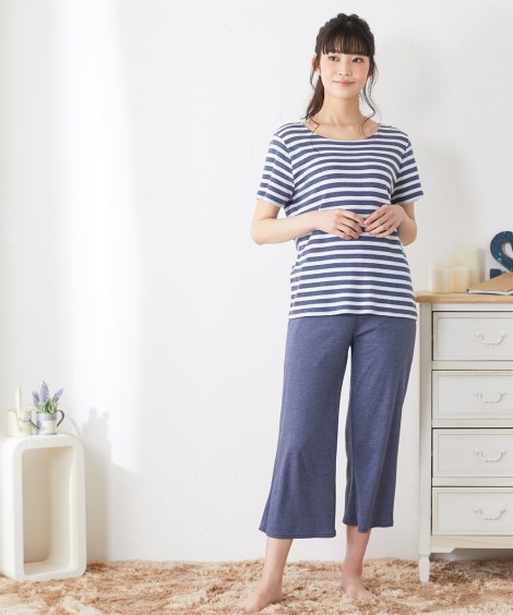 原産国 中国製 メーカー品番 ZZY4319B0907 コメント ベーシックなボーダーの半袖で単品使いまわしもOKなルームウェアのセットアップです。