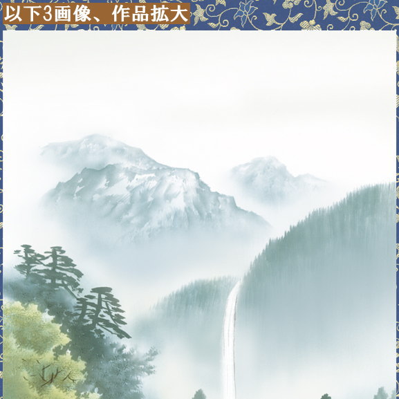 勇壮な自然 静寂の空間 伝統の画技から生まれた作品には奥深い臨場感を感じる 「現代作家 山水画シリーズ」 年中掛け 彩色山水 慌ただしい日々の暮らしに、一服の清涼感を与えてくれる風雅な山水画。