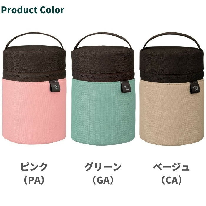 持ち運びにも便利な「持ち手つき」ポーチ 商品名 象印 2点セット 真空断熱フードジャー + ポーチ 260ml SW-GD26 SWPA01 型番 SW-GD26 SWPA01 ポーチ(SWPA01)仕様 ・カラー:グリーン(GA)、ピンク(PA)、ベージュ(CA) ・適応容量(L):約0.25〜0.40L ・外形寸法 幅×奥行×高さ(約cm):11×11.5×16.5cm※持ち手を除く ・内形寸法 幅×奥行×高さ(約cm):10×10×13.5 ・質量(約g):約80g フードジャー(SW-GD26)仕様 ・カラー:ベリー(PP)、チョコミント(AP)、パンプキン(DP) ・容量(約L):0.26 ・外形寸法 幅×奥行×高さ(約cm):9.5×9.5×11 ・保温・保冷効力(6時間):保温50度以上、保冷11度以下 ・質量(約kg):0.25 ・口径(約cm):広口約8cm 注意事項 ・なるべく実物に近い色を画像で表現していますが、撮影環境・お使いのディスプレイなどの条件によって多少の誤差が生じる場合がございます。